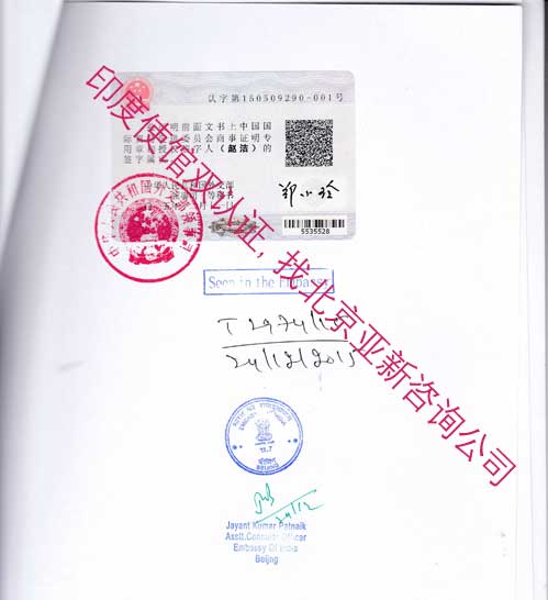 文件是中国的营业执照,要去印度使用,办理的是贸促会的商事认证,然后递交外交部做双认证,亚新认证网代为办理的